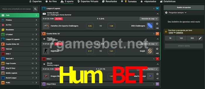 O Hum Bet oferece uma grande seleção de opções de apostas em e-sports com probabilidades competitivas
